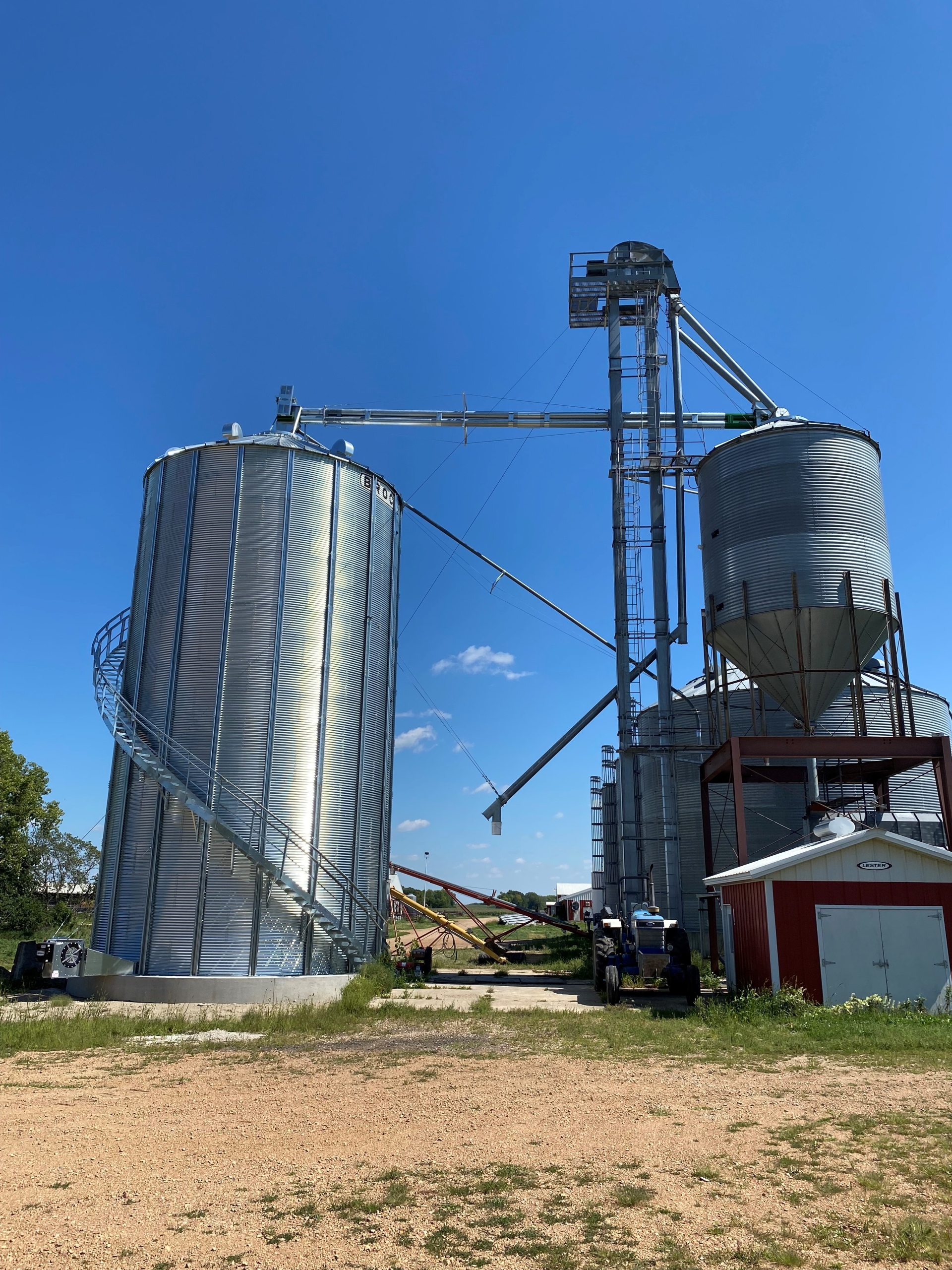 Agri-Systems supplies and installs many grain bin stairway systems every year. Whether you are putting a bin stairs on a new grain bin or would like to retrofit your existing older grain bin with a stairway, you’ll be glad you invested the money! Spiral Stairways on grain bins are the safest way to access your grain bin.